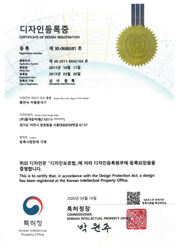 [특허]충전식 이동분사기 페이지 정보 작성자즐거운미래 댓글 0건 조회 575회 작성일 20-11-22 18:15 본문 [특허]충전식 이동분사기 페이스북 공유 트위터 공유 구글+ 공유 목록 이전글[특허]친환경 액상 제설제 조성물 20.11.22 다음글[특허]충전식 이동 분사장치 20.11.22 댓글목록 댓글목록 등록된 댓글이 없습니다.