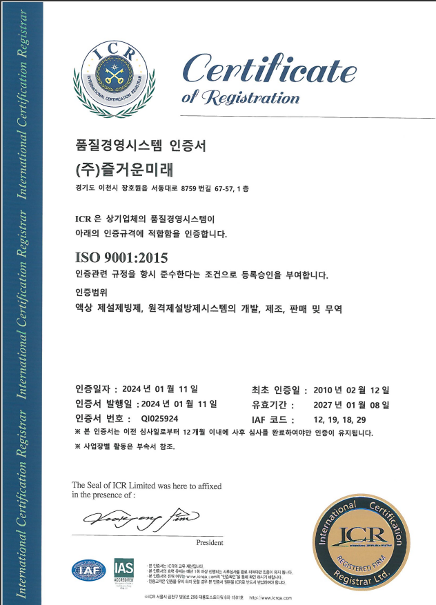 ISO 품질경영시스템인증서 페이지 정보 작성자즐거운미래 댓글 0건 조회 256회 작성일 24-09-11 13:59 본문 [ISO 품질경영시스템인증서] 페이스북 공유 트위터 공유 구글+ 공유 목록 이전글ISO 환경경영시스템 인증 24.09.11 다음글이노비즈 확인서 22.08.22 댓글목록 댓글목록 등록된 댓글이 없습니다.